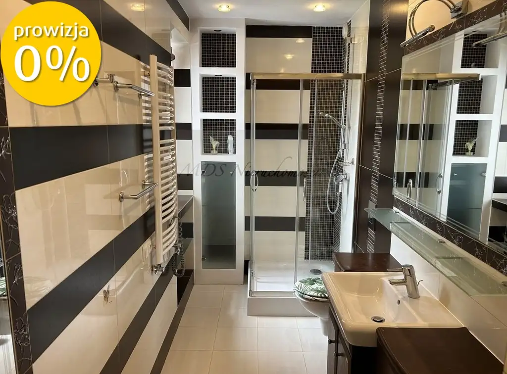 Osobna duża kuchnia z oknem, w pełni umeblowana i wyposażona. Duża łazienka również z oknem, z kabiną prysznicową.