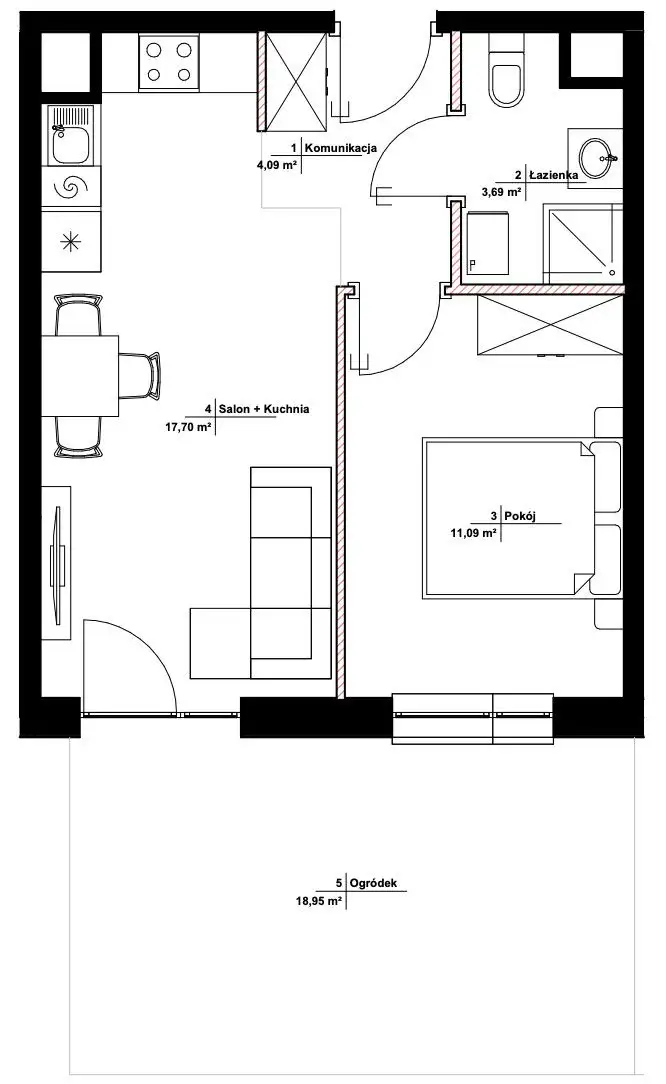 2 pokojowego mieszkania z ogródkiem w stanie deweloperskim, Poznań