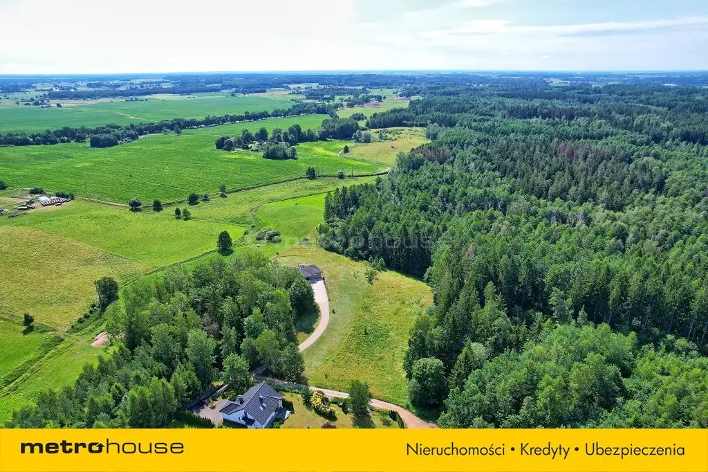 Działka położona jest w spokojnej i malowniczej okolicy, bezpośrednio granicząc z Lasem Państwowym, co zapewnia wyjątkowy klimat oraz prywatność. Jednocześnie nieruchomość znajduje się zaledwie 4 km od miasta Olecko, co gwarantuje szybki i wygodny dojazd do wszelkich udogodnień.
