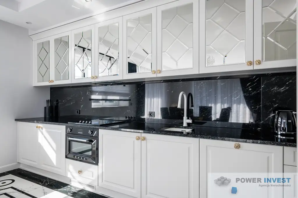 WYJĄTKOWE WYKOŃCZENIE I NAJWYŻSZY STANDARDWysokiej jakości materiały wykończeniowe, w tym klamki meblowe zdobione kryształami Swarovskiego,