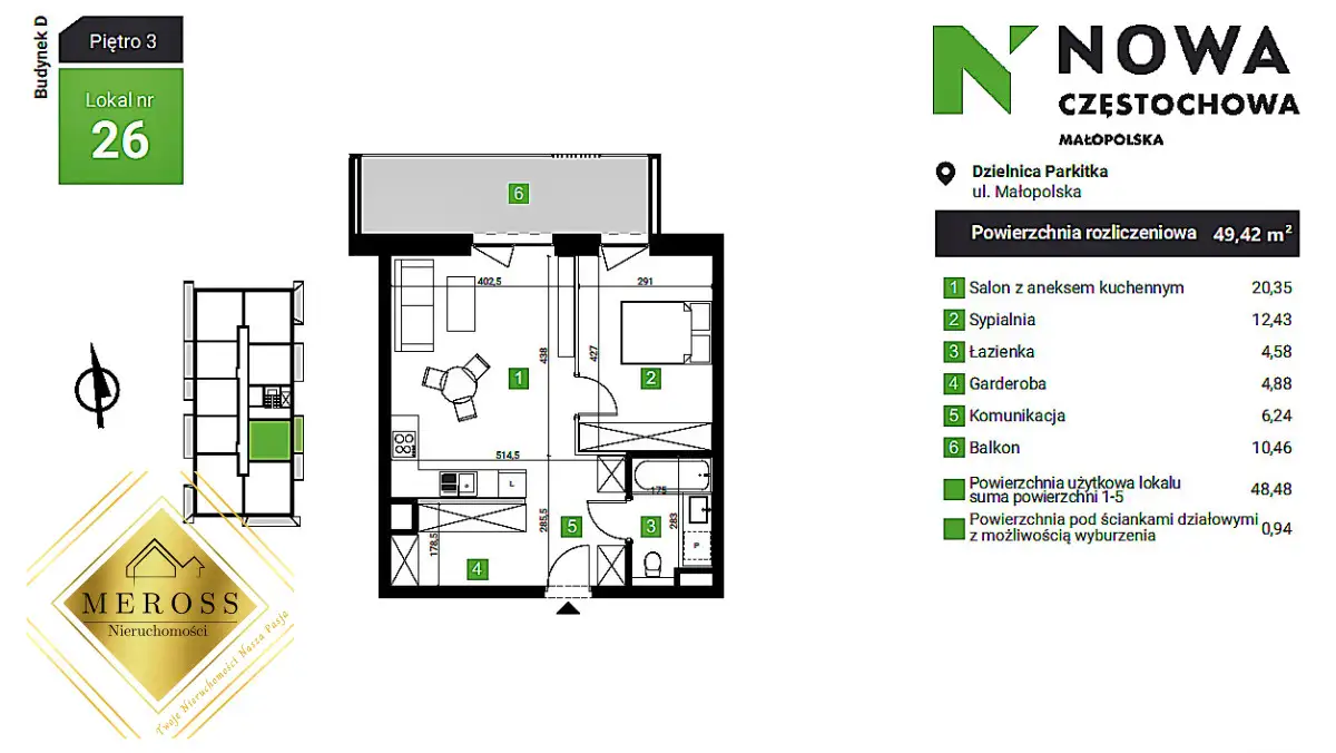 Biuro MEROSS Nieruchomości przedstawia do sprzedaży mieszkanie z najnowszej inwestycji Nowa Małopolska, zlokalizowanej w dzielnicy Parkitka w Częstochowie. Lokal mieszkalny...