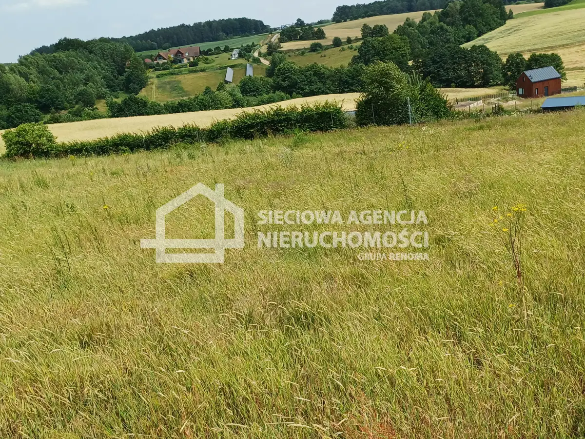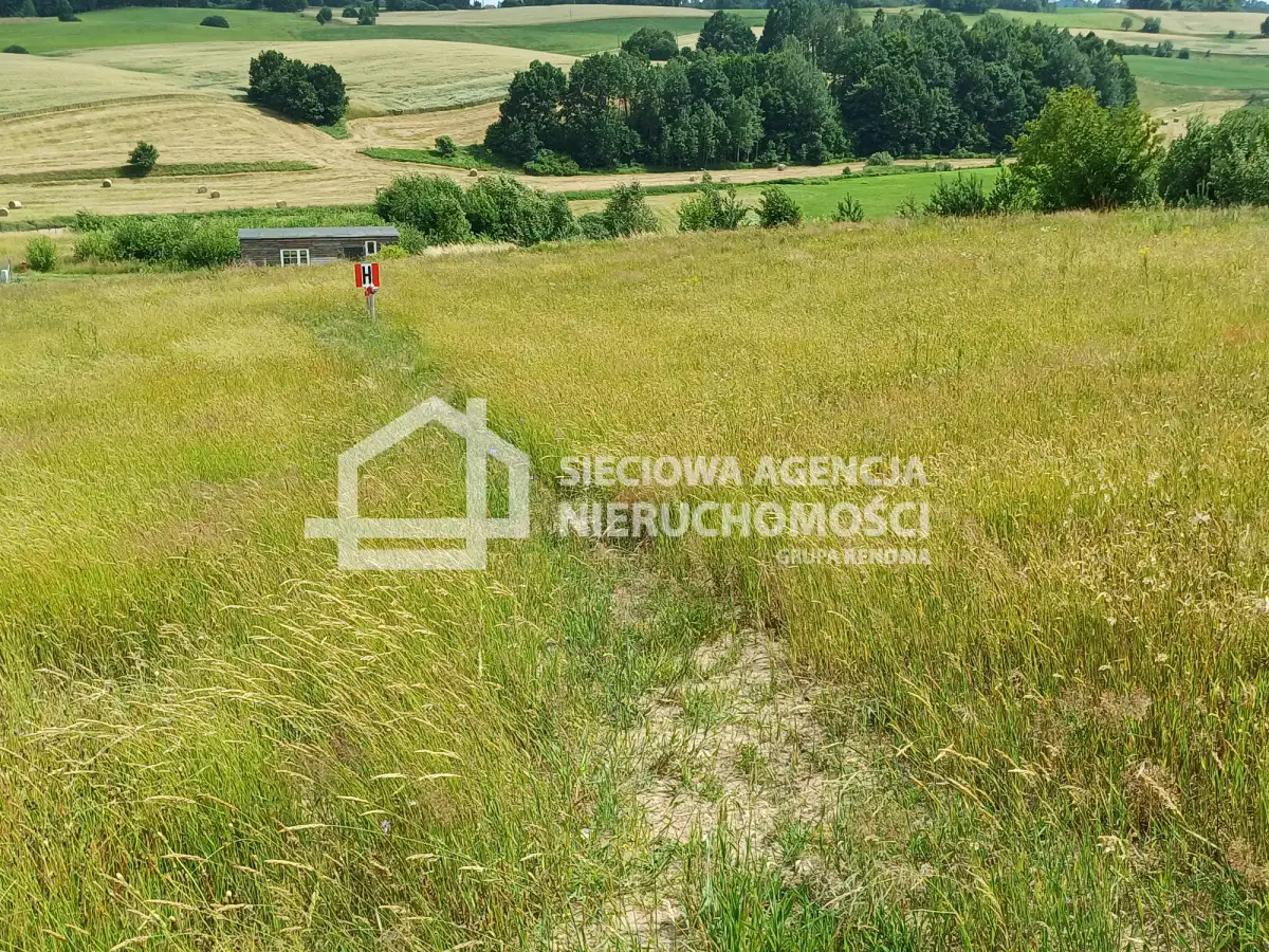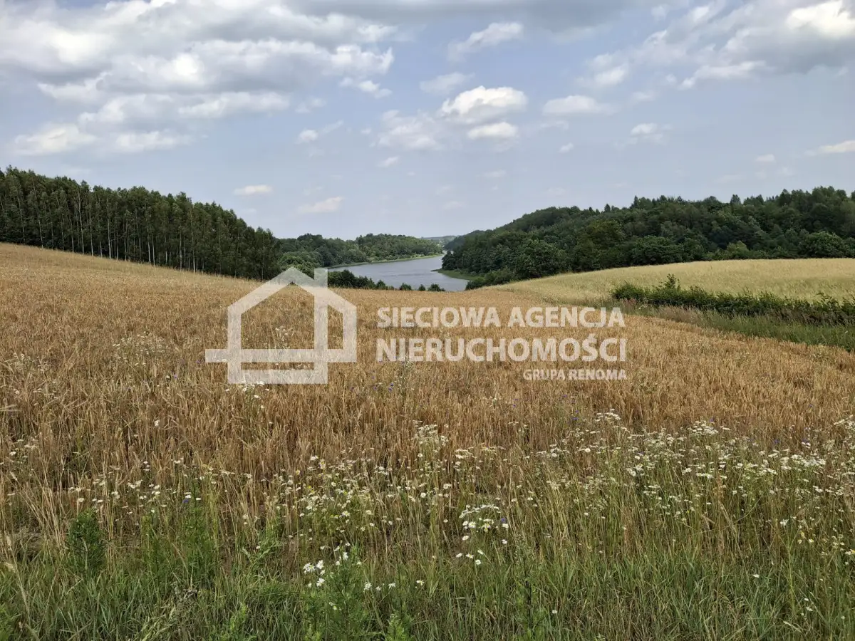 Działka z malowniczym widokiem na dolinę i okoliczne pola oraz jezioro.