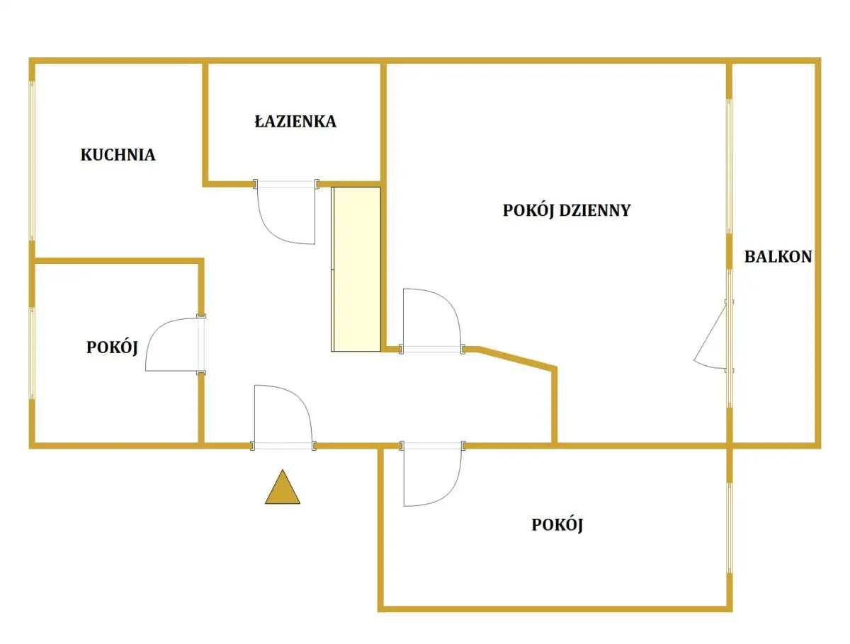 Nieruchomość składa się z kuchni i trzech oddzielnych pokoi, łazienki z WC oraz przedpokoju.