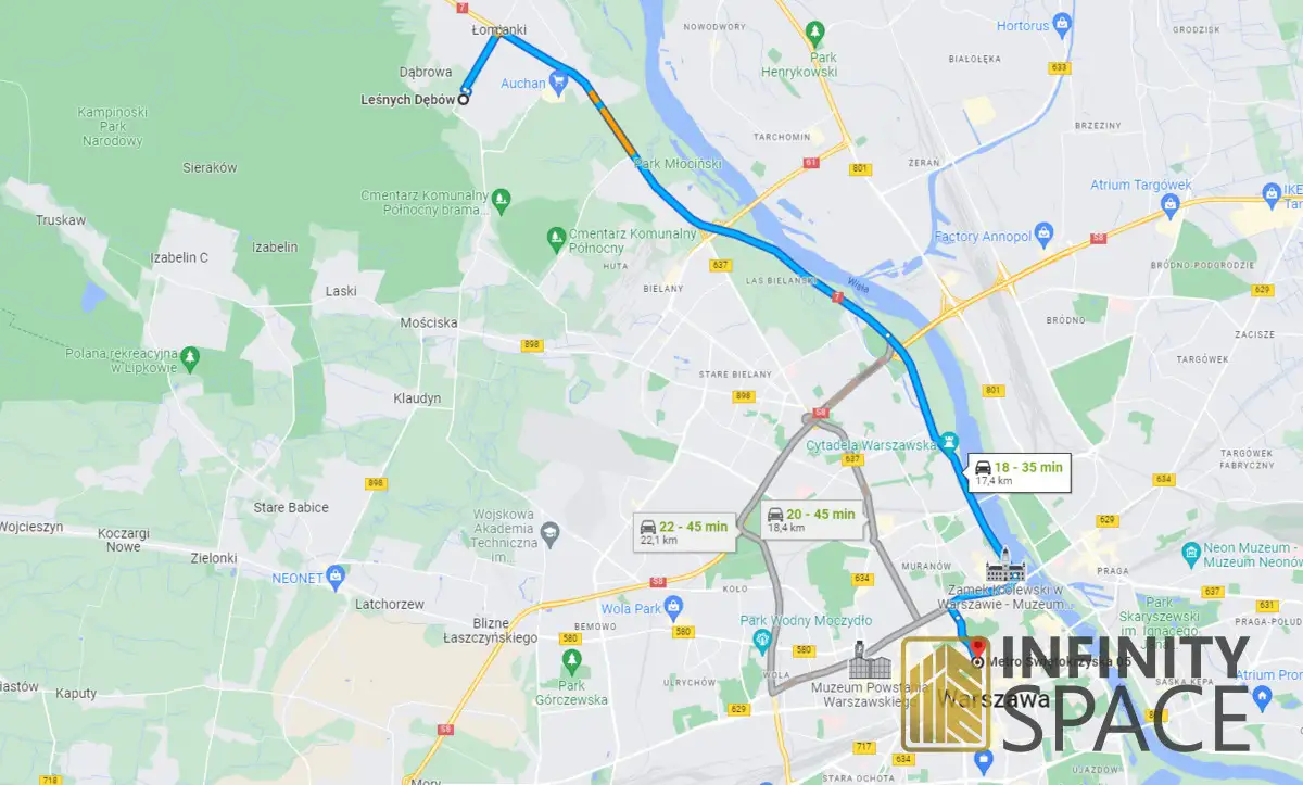 Do centrum Warszawy dojedziesz samochodem w 20-30 minut.