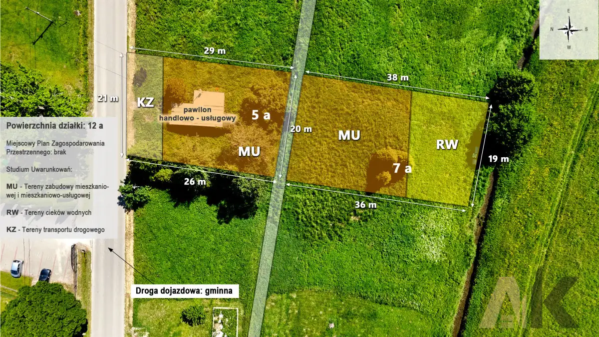 Powierzchnia zabudowy: 6,60 x 4,20 = 27,72 m²Kubatura kiosku: 27,72 x 3,60 = 99,79 m3Powierzchnia użytkowa: 6,10 x 3,70 = 22,57 m²Powierzchnia całkowita: 27,72 m² Przyłącz energetyczny, wodociąg w sąsiedztwie, gaz w granicy działki, kanalizacja w granicy działki.Brak Miejscowego Planu Zagospodarowania przestrzennego - W Studium tereny MU - tereny mieszkaniowo-usługoweCena 95 000 zł Opis oferty zawarty na stronie internetowej sporządzany jest na podstawie oględzin nieruchomości oraz informacji uzyskanych od właściciela, może podlegać aktualizacji i nie stanowi oferty określonej w art. 66 i następnych K.C.
