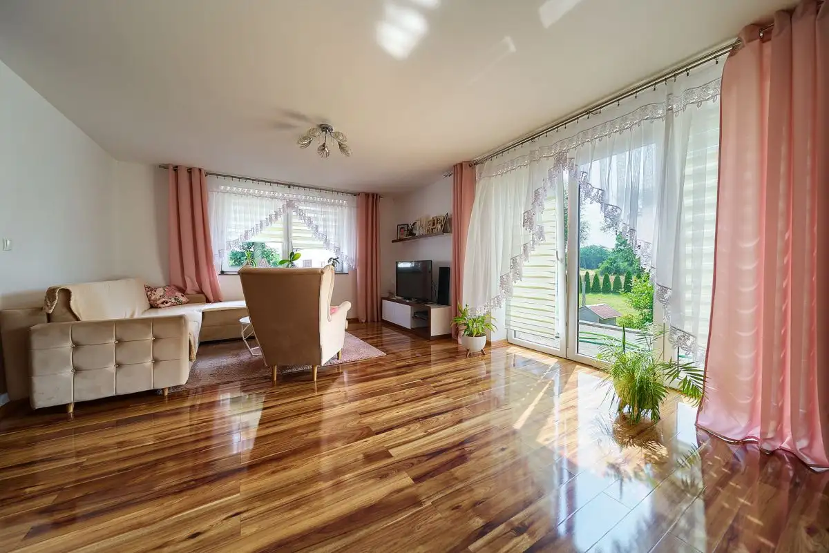 Dom przeszedł gruntowny remont w 2012 roku - wymieniono wszystko od podstaw: tynki, posadzki, stolarkę okienną, zainstalowano ogrzewanie podłogowe (oprócz sypialni). W 2022 roku wykonano nową elewację. Dach z wymienionymi belkami oraz nowa instalacja elektryczna gwarantują bezpieczeństwo i komfort. W salonie i pokojach położono panele podłogowe. Dom jest w pełni gotowy do zamieszkania, nie wymaga żadnych nakładów remontowych. Pomieszczenie gospodarcze również w dobrym stanie technicznym.