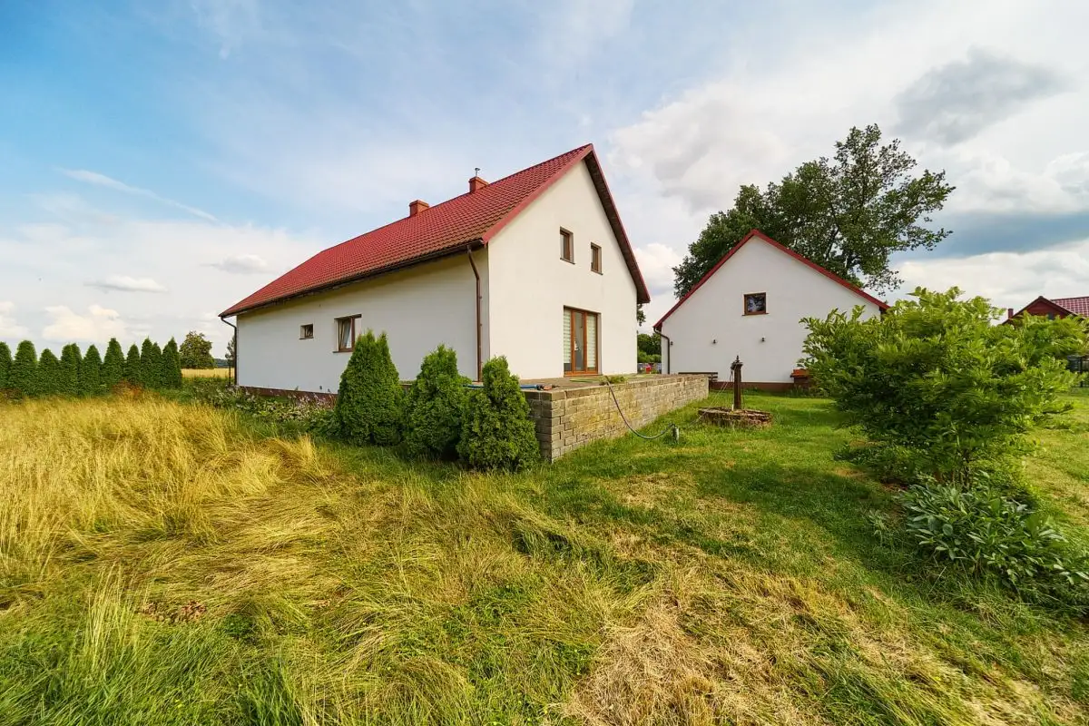 Dom z działką 75-arową i dodatkowym budynkiem gospodarczym w województwie dolnośląskim, powiat lubiński, gmina Rudna. Ogromna działka 7500 m² stanowi nie tylko przestrzeń do życia, ale również kapitał na przyszłość. Pomieszczenie gospodarcze z drugą kuchnią może służyć jako dom dla gości, być wynajmowane lub wykorzystywane do prowadzenia działalności. W pełni wyposażona kuchnia w domu głównym pozostaje w cenie. Taras od strony ogrodu to idealne miejsce do porannej kawy z widokiem na własne 75 arów ziemi.