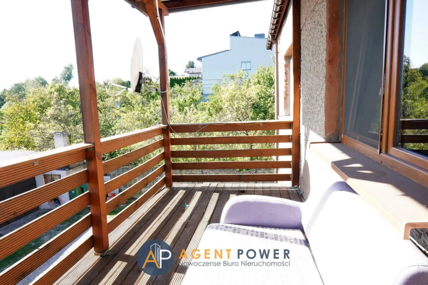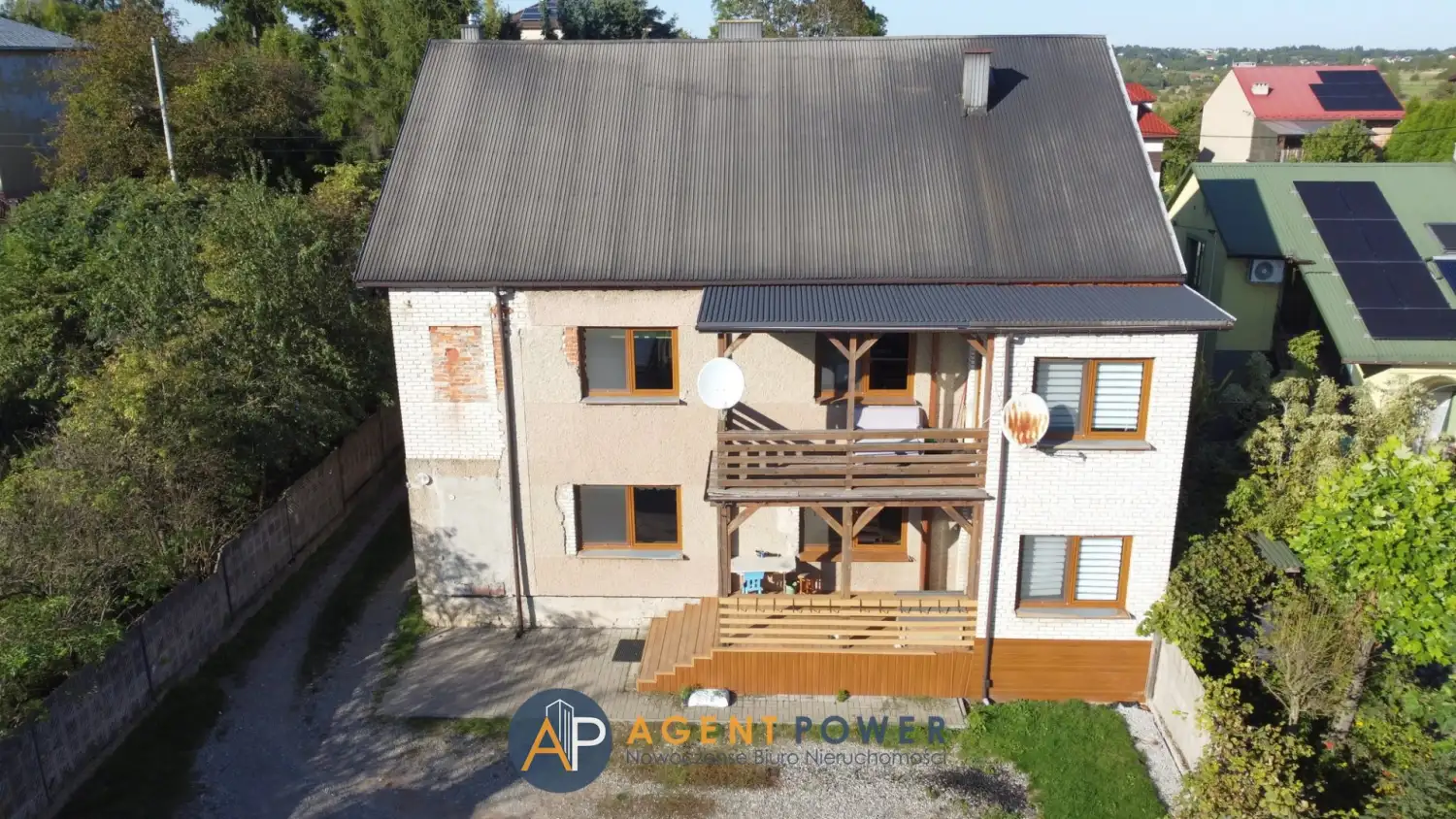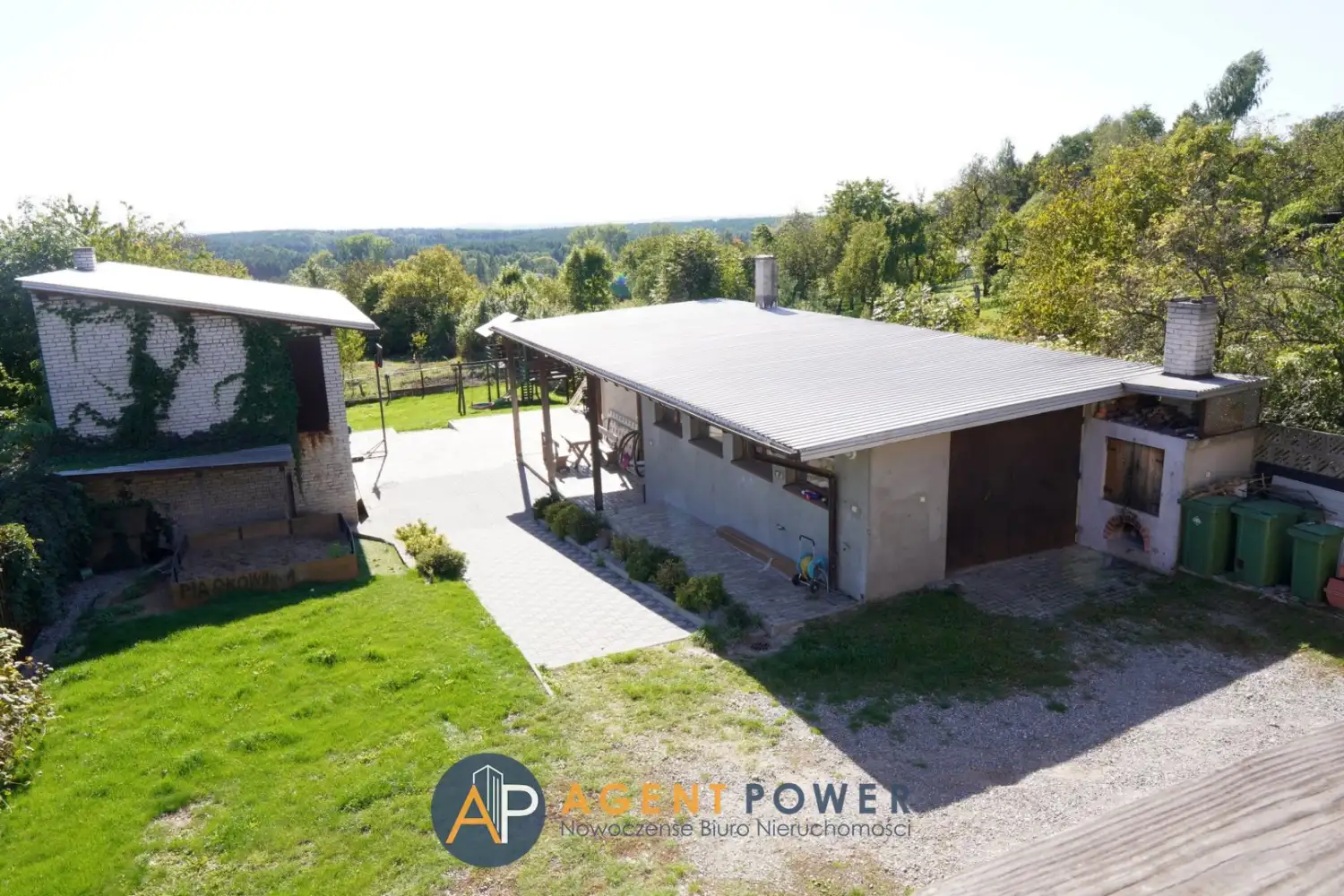 Dom posiada dwa tarasy: dolny z wejściem do budynku oraz górny z panoramicznym widokiem na okolicę. Na tyłach posesji znajduje się zielony teren z trawnikiem i placem zabaw. Duża kuchnia jest w pełni wyposażona w meble i AGD (zmywarka, kuchenka, okap, lodówka, piekarnik). Na podłogach znajdują się panele i płytki. Łazienka na parterze wyposażona jest w prysznic i WC, a na piętrze w wannę i WC. Dom posiada napęd do bramy wjazdowej, co zwiększa komfort codziennego użytkowania.