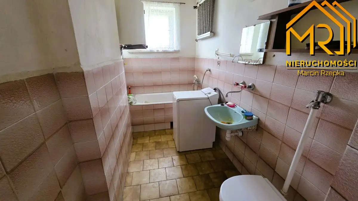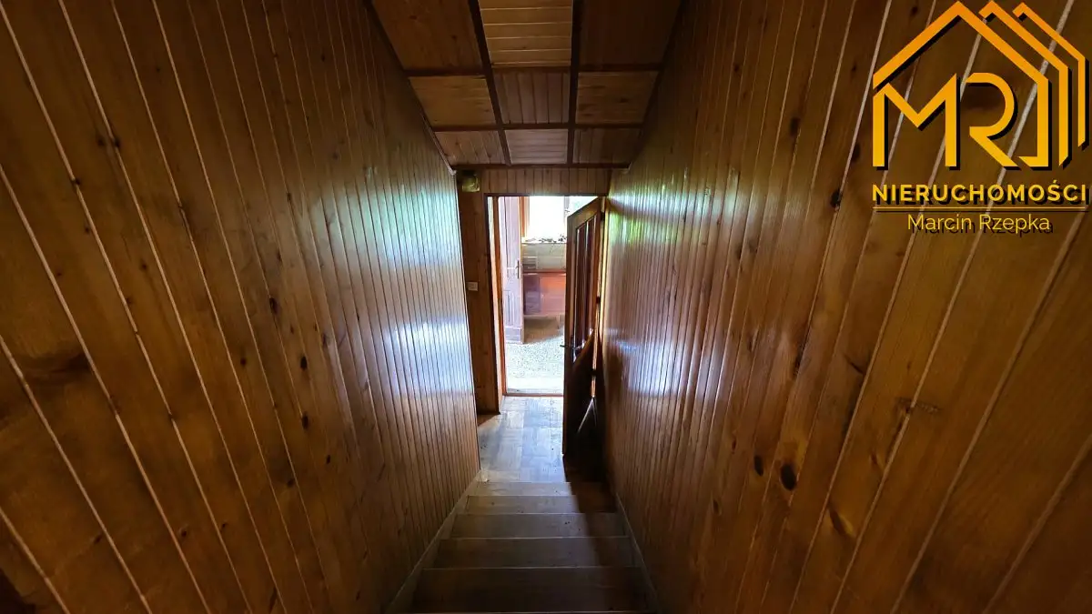 Dom wybudowany w 1984 roku, solidny - wzniesiony z cegły i pustaka, ocieplony z zewnątrz, z dachem pokrytym blachą. Budynek posiada tradycyjne, drewniane okna. Powierzchnia całkowita budynku wynosi około 260 m², z czego 128.9 m² to powierzchnia użytkowa. Układ funkcjonalny rozplanowany został na: