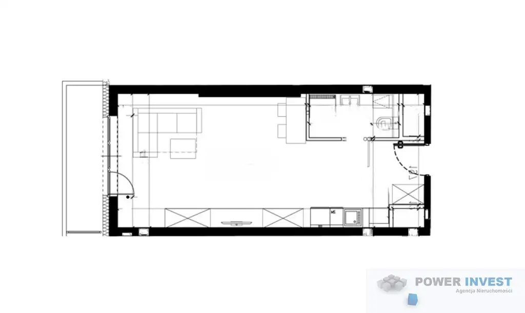 Kawalerka o powierzchni ok 27 m² mieści się na 8 piętrze. Składa się z salonu z aneksem kuchennym, łazienki oraz hollu.