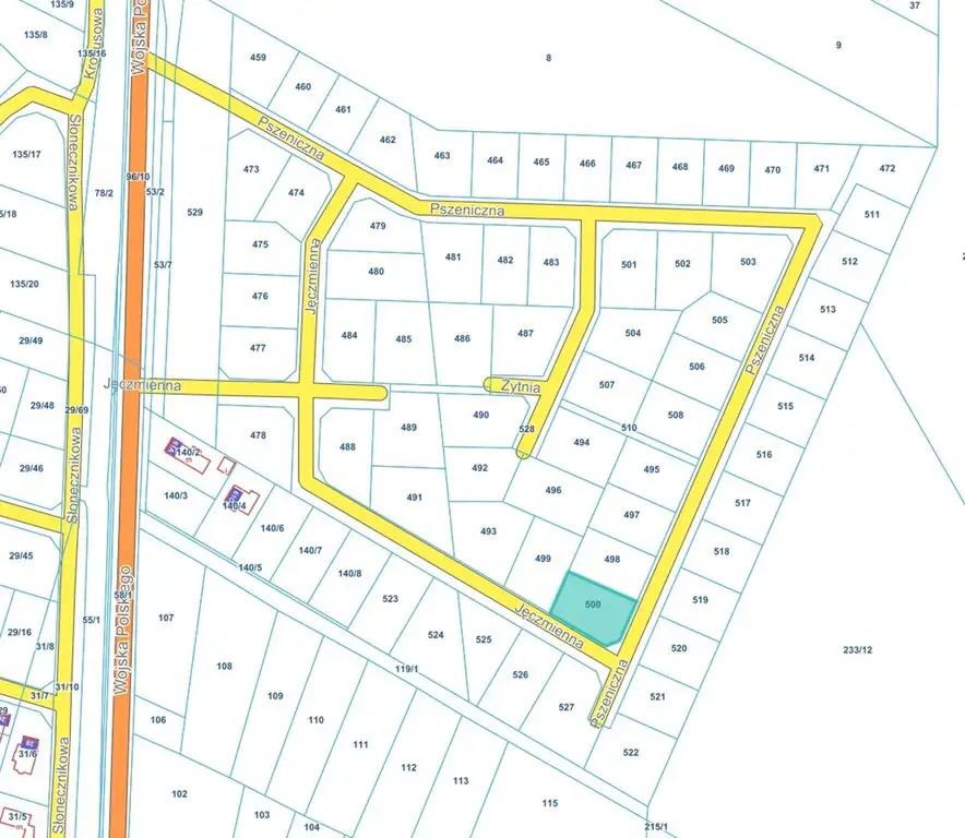 Przedmiotem przetargu jest sprzedaż prawa własności niezabudowanej nieruchomości położonej na rogu ul. Pszenicznej i ul. Jęczmiennej w Pucku, składającej się z działki oznaczonej w ewidencji gruntów nr 500 o powierzchni 768 m² (obr.5), użytek: RIIIa.