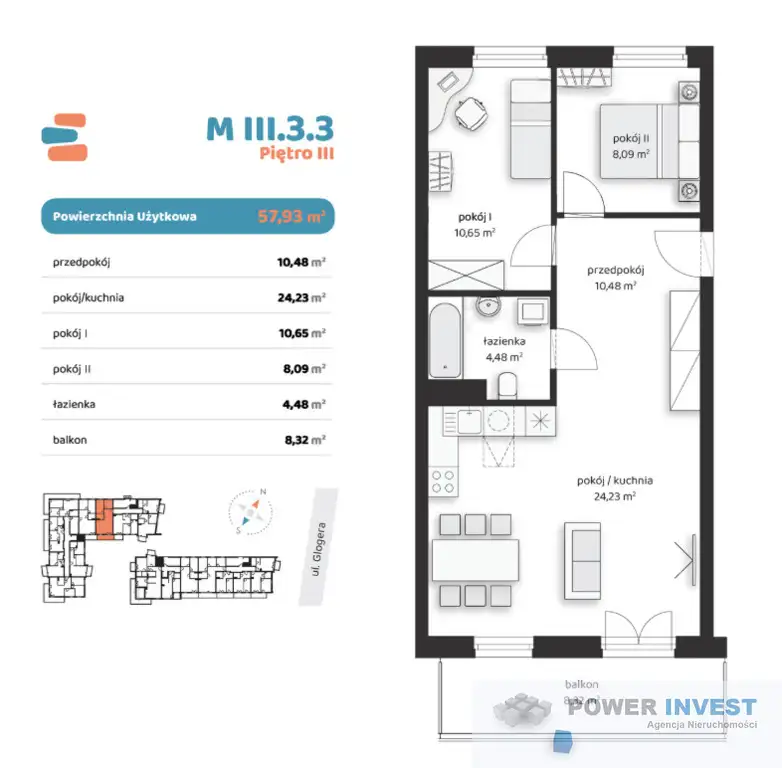 Powierzchnia użytkowa: 57,93 m²