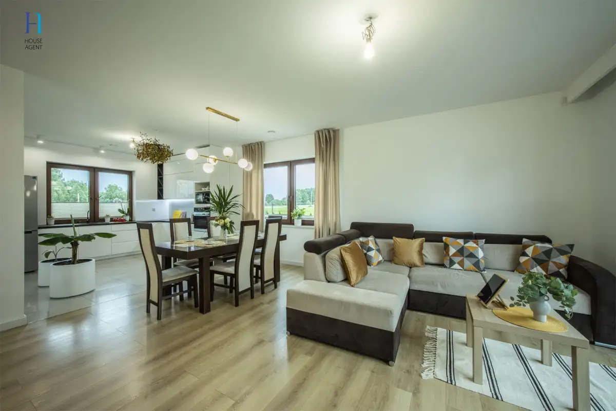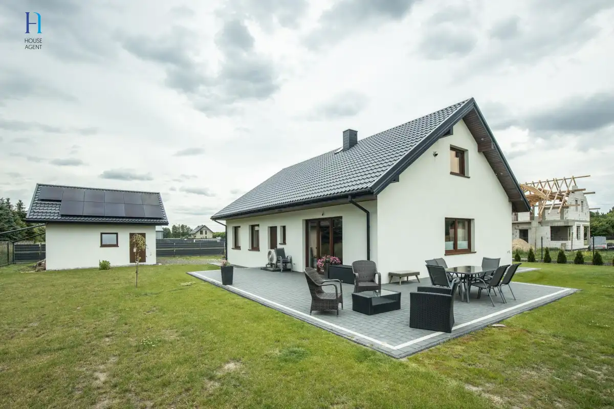Na sprzedaż nowoczesny dom w okolicy Rzgowa - komfort, natura i idealna lokalizacjaZ przyjemnością prezentujemy Państwu wyjątkową ofertę sprzedaży wolnostojącego domu jednorodzinnego, zbudowanego w 2023 roku według projektu „Mokka” z pracowni Extradom. Nieruchomość położona jest w malowniczej i spokojnej okolicy Rzgowa, zaledwie kilka minut od centrum miejscowości oraz dogodnym dojazdem do Łodzi.