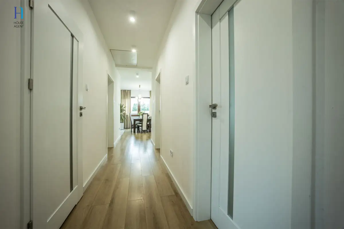 pompa ciepła + fotowoltaikaOpis nieruchomości:Ten funkcjonalny i energooszczędny dom oferuje wszystko, czego potrzebuje nowoczesna rodzina. Jasna strefa dzienna z dużymi oknami zapewnia piękny widok na ogród oraz na przylegającą łąkę i las, wprowadzając do wnętrza spokój i naturalne światło. Przemyślany układ pomieszczeń gwarantuje komfort, prywatność i przestrzeń do życia.