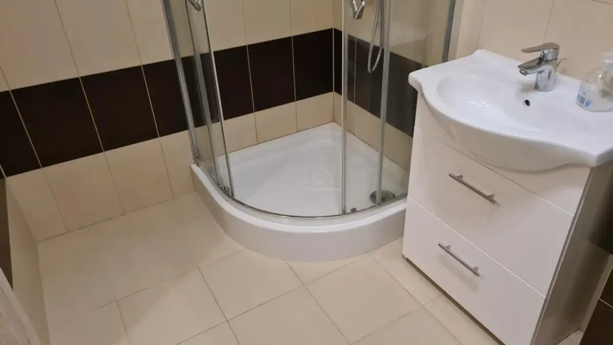 - Łazienka: Funkcjonalna, wyposażona w kabinę prysznicową, pralkę i praktyczne szafki.