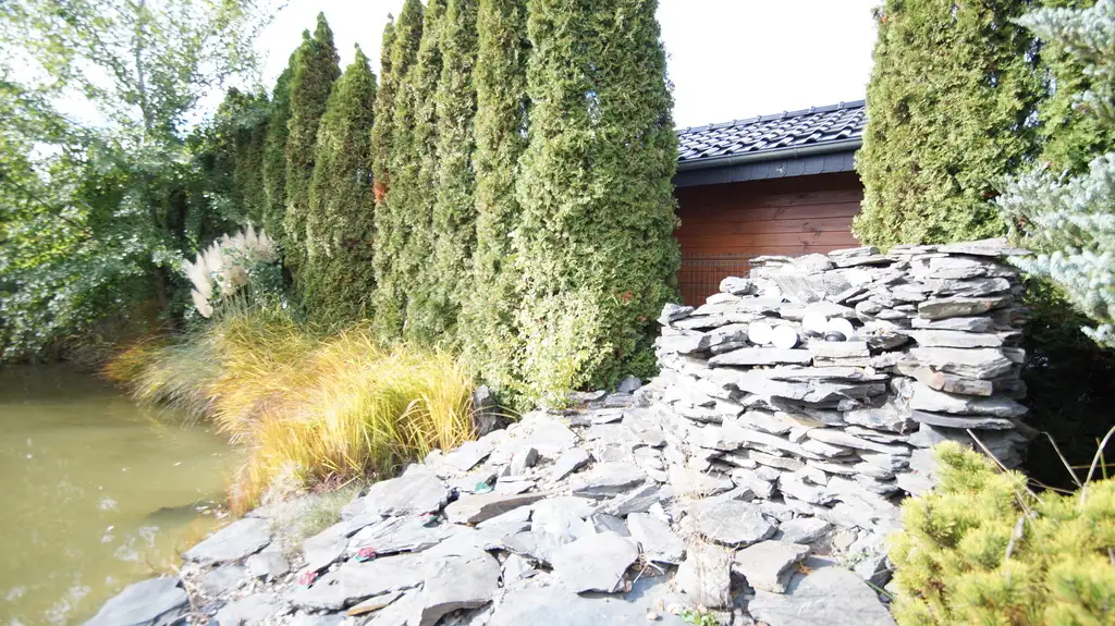 Nieruchomość ogrodzona, fronty kute. Na działce znajduje się duży, zarybiony staw, z kaskadą z kamieni oraz pomostem. Ogrzewanie oraz ciepła woda - pompa ciepła, kanalizacja miejska.