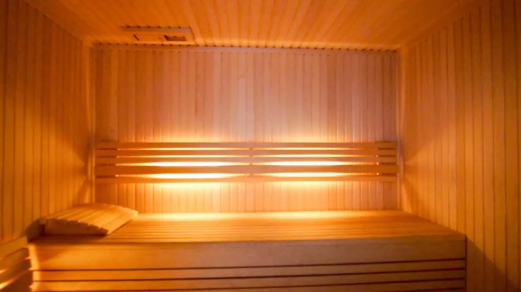 parter: salon z wyjściem na taras, aneks kuchenny z jadalnią, pokój, łazienka, sauna, garaż, przedpokój.