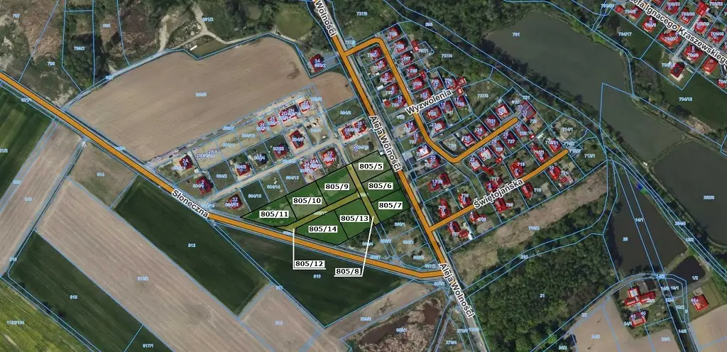 - dz. 805/14 o pow. 0,1583ha, wraz z udziałem w dz. 805/8, 805/12, cena wywoławcza: 254.600,00zł, wadium: 25.500,00zł.