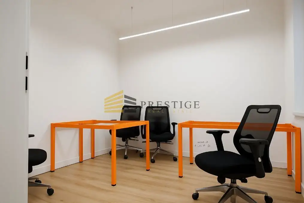 Najemcy mają również dostęp do wspólnej przestrzeni w piwnicy, w której znajduje się w pełni wyposażona kuchnia, pokój otwarty w stylu konferencyjnym oraz przytulny salon — idealne miejsce na mniej formalne spotkania czy chwilę odpoczynku.