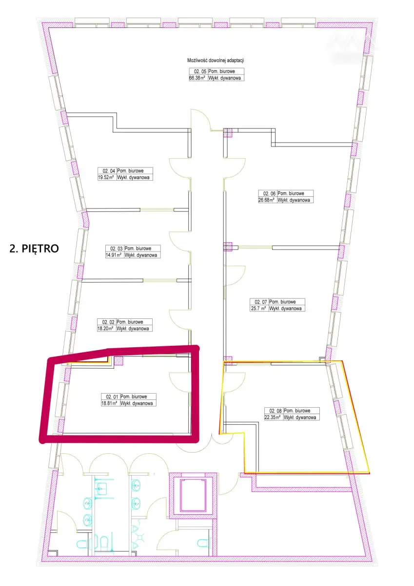 Obecnie do wynajęcia są 2 biura.
