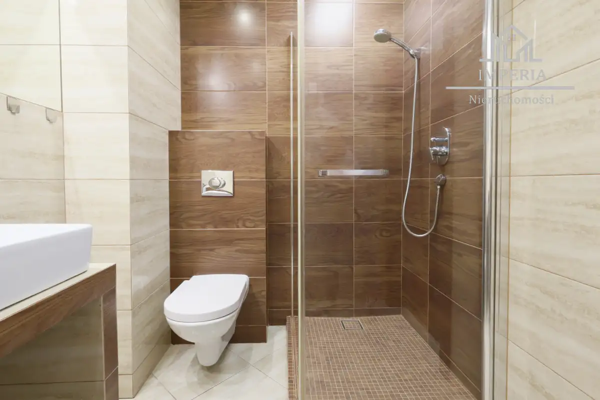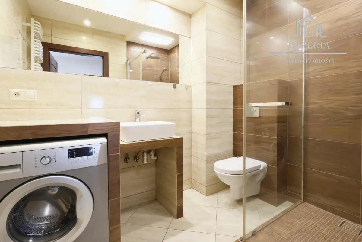 • Łazienka (4,5 m²) - z kabiną prysznicową, pralką oraz miejscem do przechowywania.