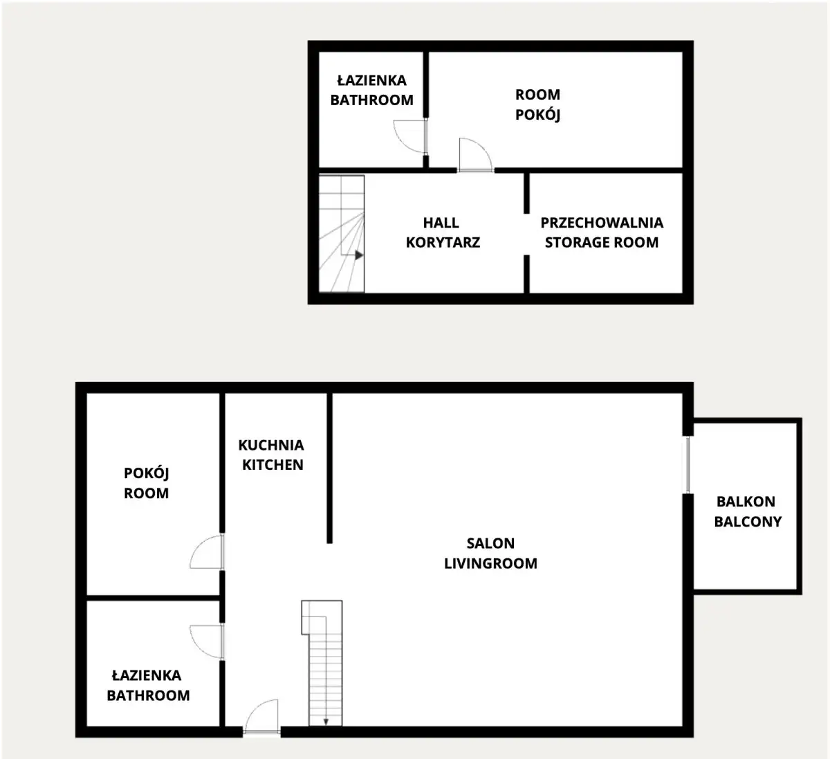 OPIS NIERUCHOMOŚCIMieszkanie znajduje się na drugim piętrze budynku. Ekspozycja wschodnio - zachodnia, słoneczne mieszkanie. Zostało wykończone w wysokim standardzie. Na podłogach wysokiej klasy panele o wysokiej klasie ścieralności. Mieszkanie jest dwupoziomowe, przestronne. Znajduję się w nim łazienka z prysznicem na pierwszym piętrze, oraz toaleta na piętrze. Pokój ze skosami, nie jest wliczany do powierzchni mieszkania i ma około 10m². Mieszkanie świetnie nadaje się dla studentów (nawet do 5 osób) lub rodziny.