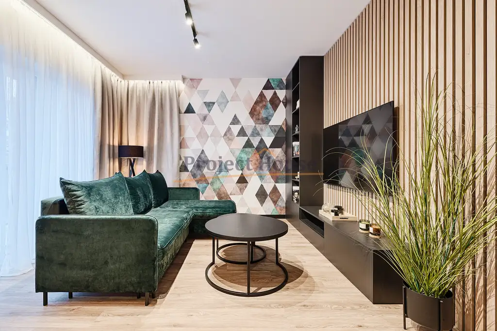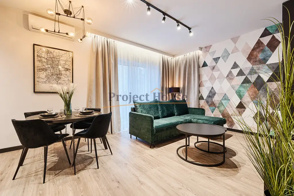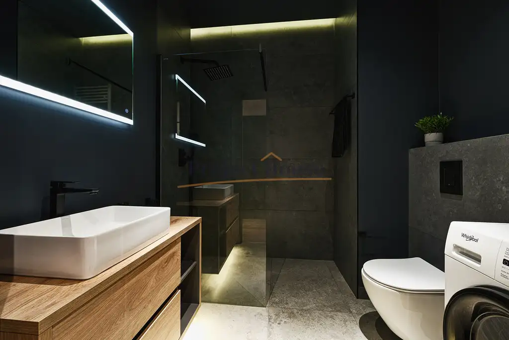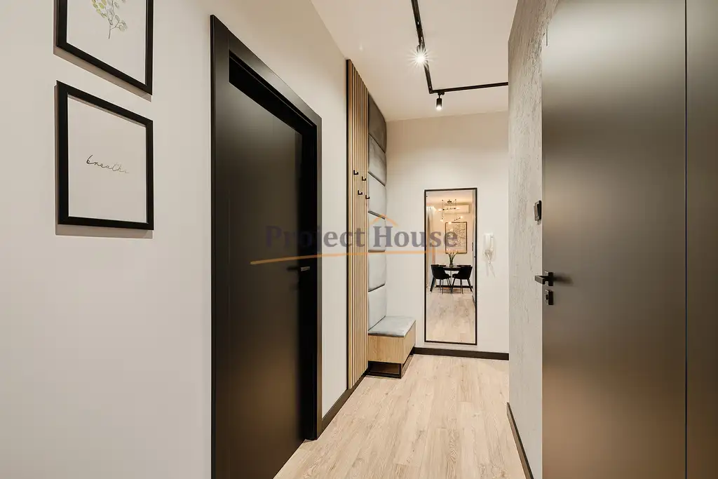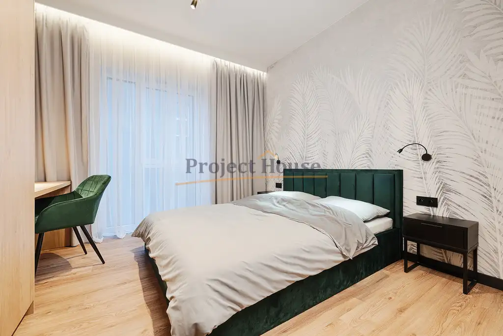 Do wykończenia wykorzystano materiały najwyższej jakości. Apartament zaprojektowany z dbałością o najmniejsze szczegóły, został on wykończony według najnowszych trendów i wyposażony w sprzęty najwyższej jakości.