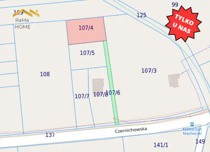 Kłokoczyn - płaska działka budowlana o powierzchni 953 m²