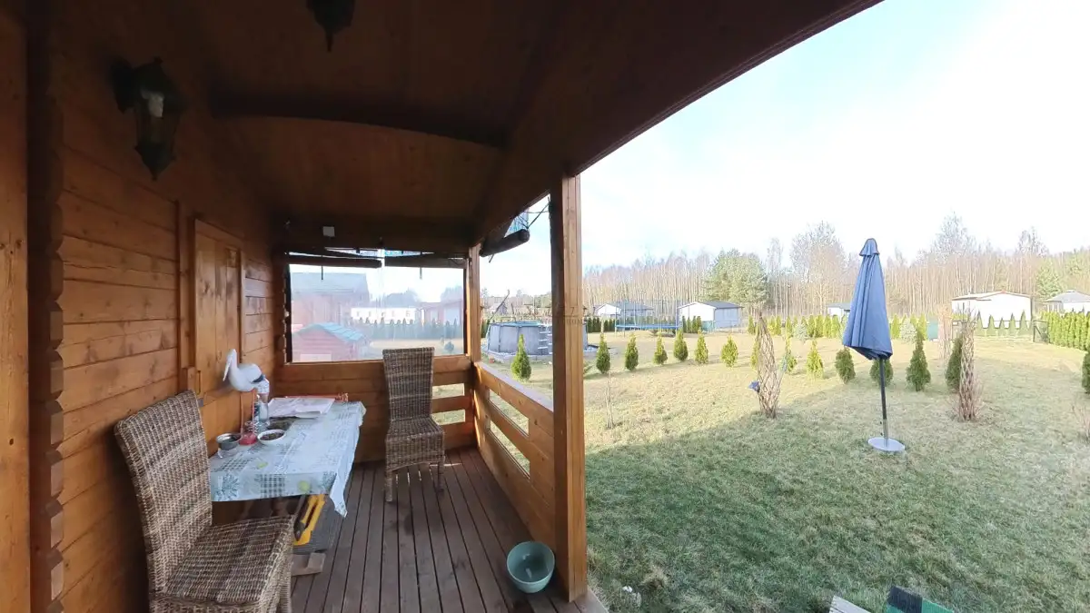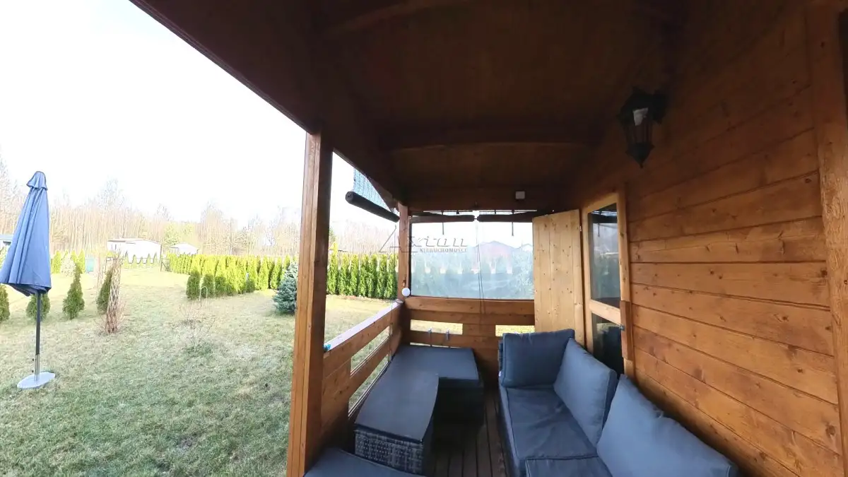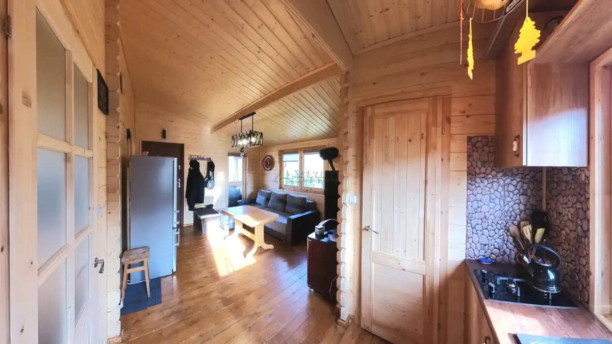 Nowy domek drewniany z okiennicami, o powierzchni 35 m² oraz z tarasem 10m², został zbudowany jesienią 2020r., jest w pełni przygotowany do użytkowania.