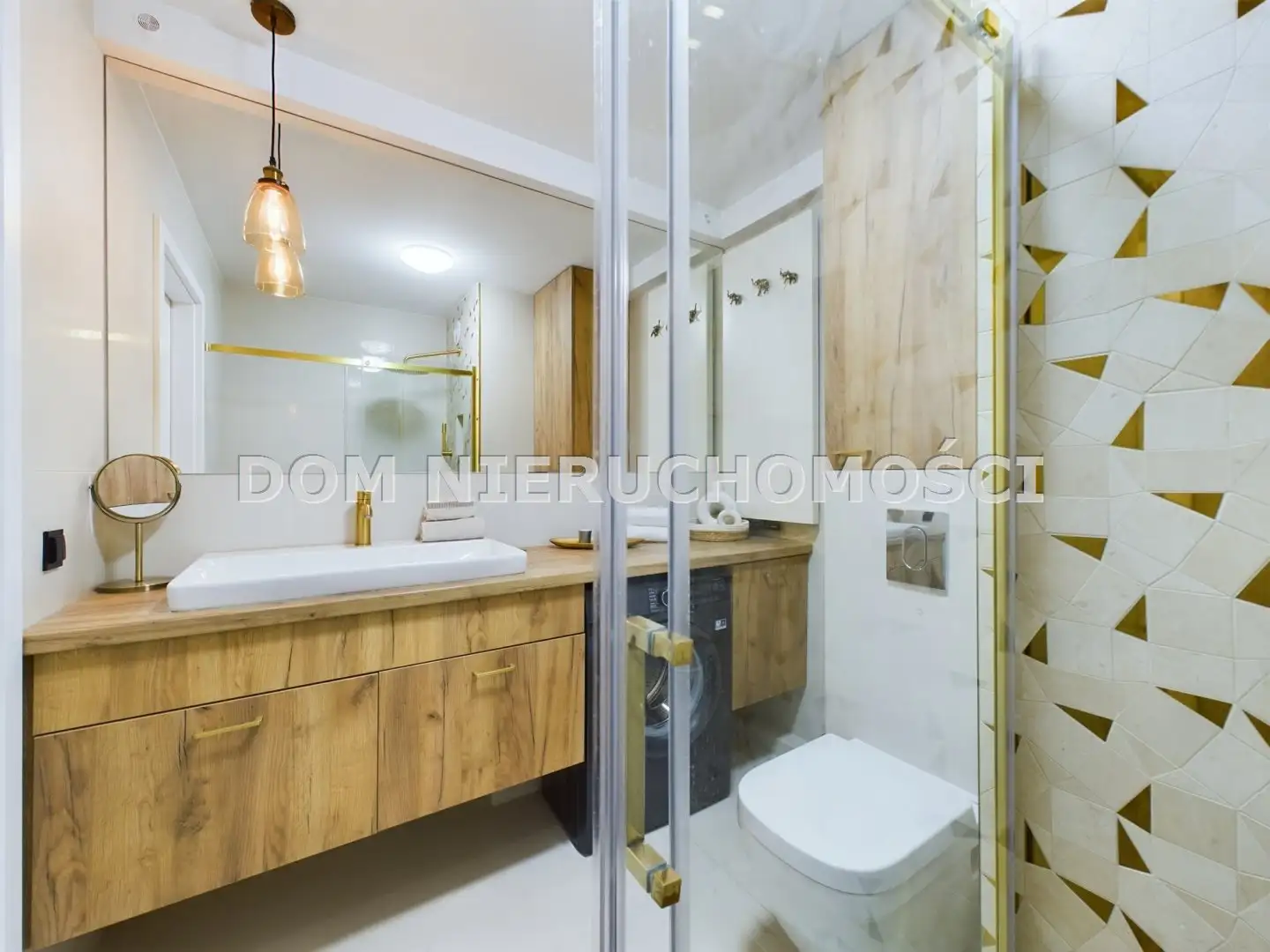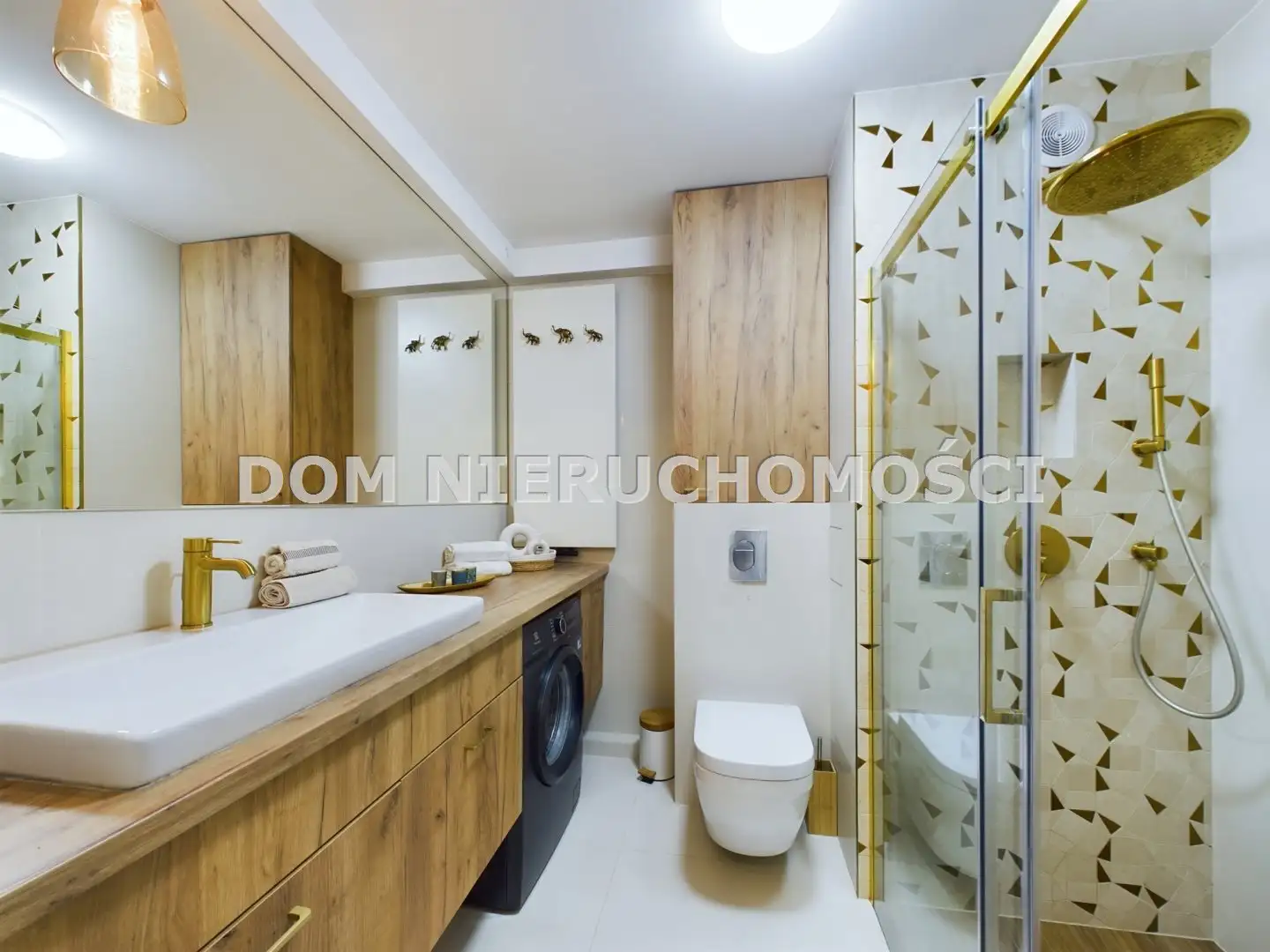 - modnie wykończonej łazienki z kabiną prysznicową, połączonej z wc,