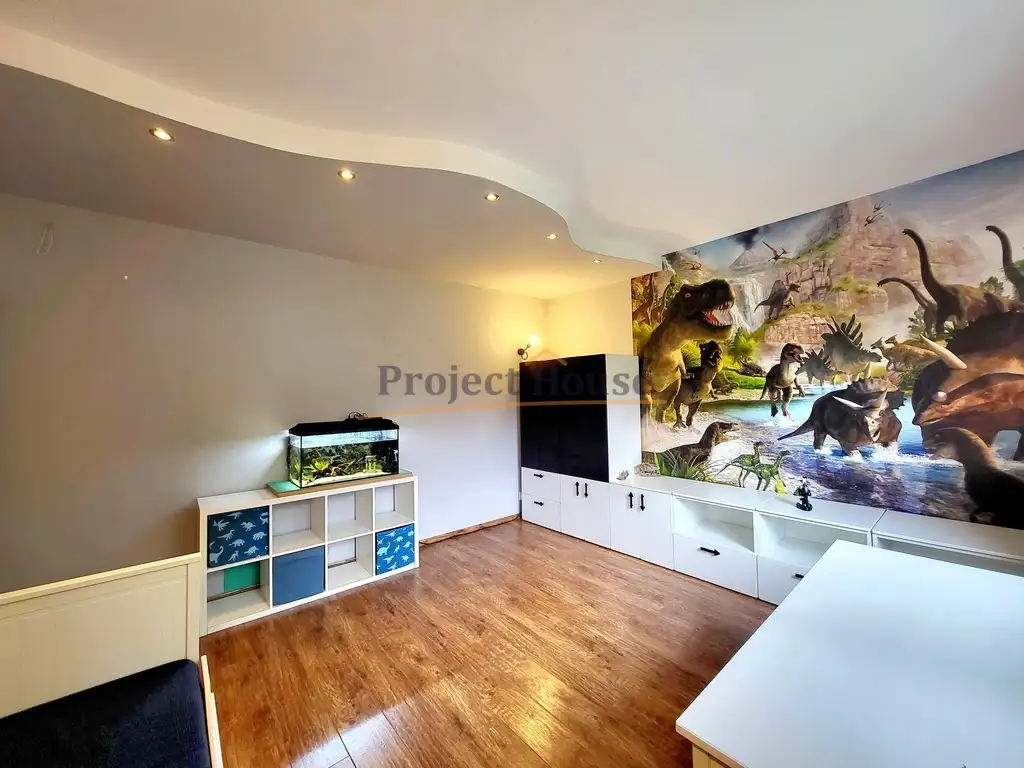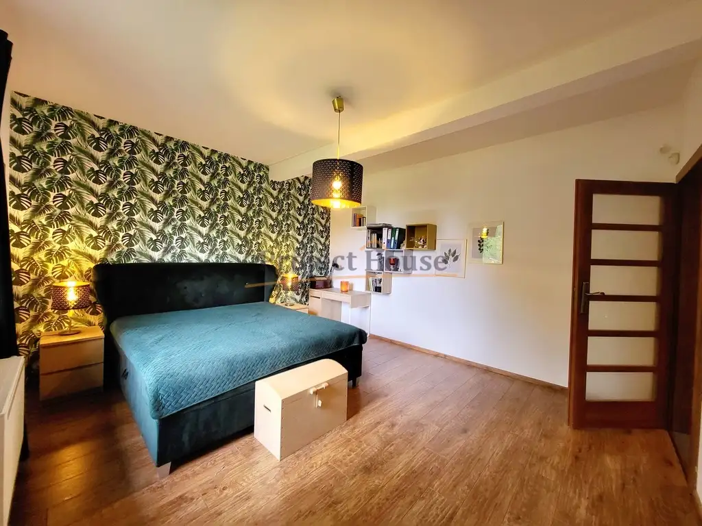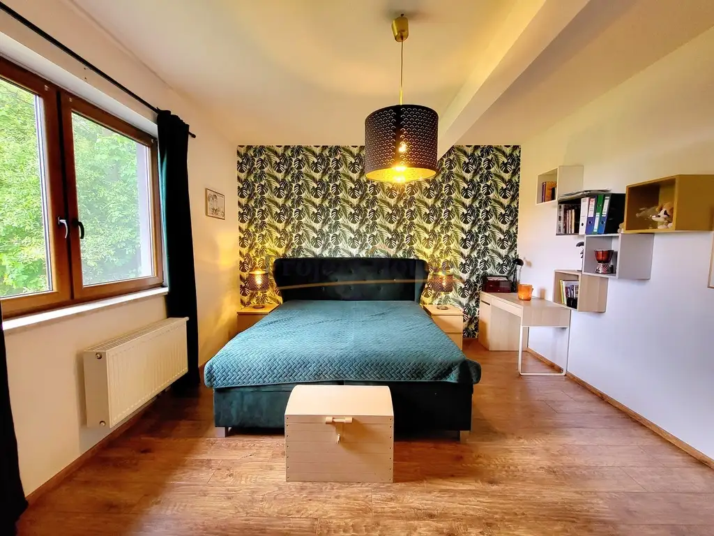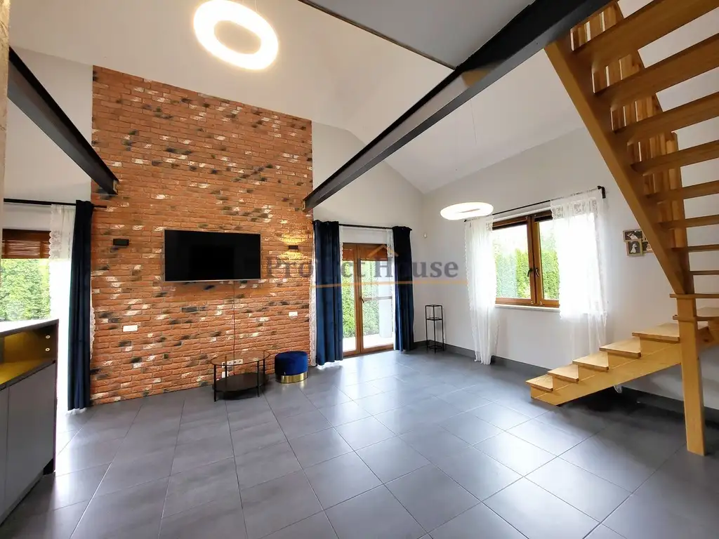 Dom nadaje się do odświeżenia, a wszystko według własnego uznania. Dom nie wymaga dużych nakładów finansowych, w pełni spełnia swoją funkcję. Na podłodze położone dobrej jakości panele oraz terakota, na ścianach gładzie. Na antresolę prowadzą piękne drewniane schody.