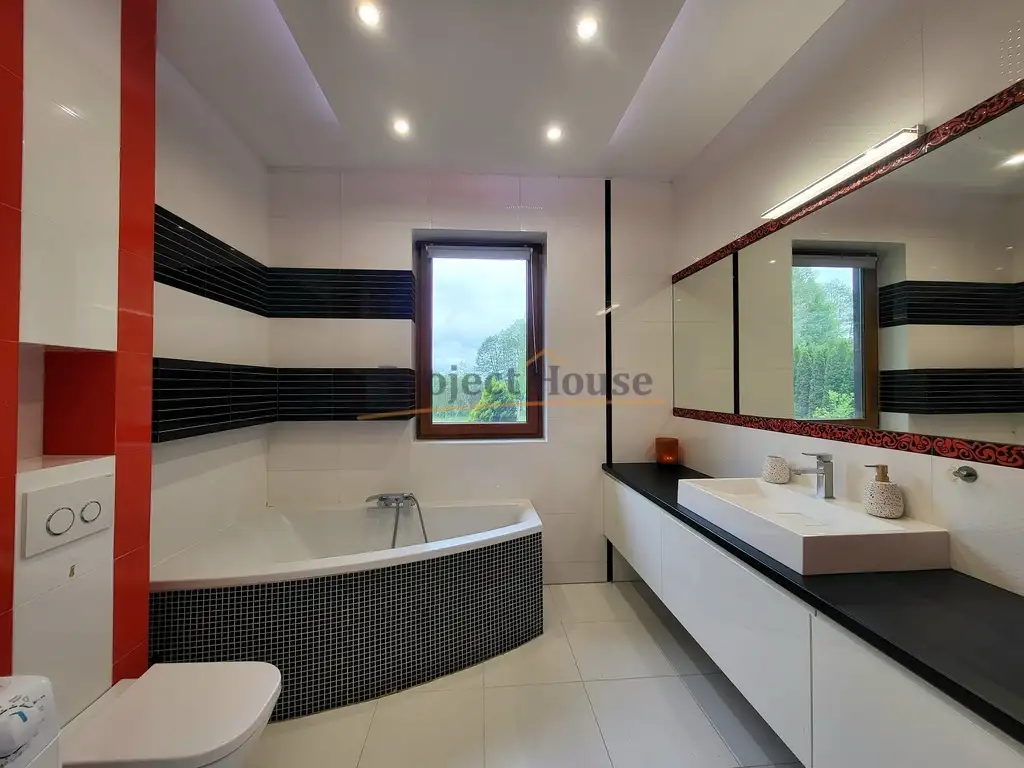 Całoroczny dom z pustaka z 2018 roku, ogrzewany gazowo (ogrzewanie podłogowe) oraz kominkowo. W całym domu instalacja elektryczna miedziana. Okna plastikowe, w oknach zamontowane moskitiery oraz rolety wewnętrzne. Duży taras (kostka) na który wychodzimy z salonu. Podciągnięty alarm. Prywatny światłowód - dostawcą firma TOYA. Działka ogrodzona, Cały dom ocieplony styropianem 12cm. Dach poryty blacho-dachówką. Szambo o pojemności 9m3. Dom wykończono z dbałością o najdrobniejsze szczegóły, wykorzystano materiały najwyższej jakości.