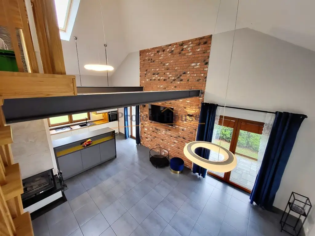 - dom 1-poziomy o powierzchni całkowitej 140m² (w tym antresola około 44m²)