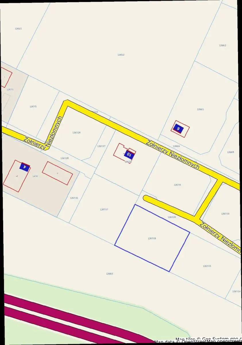 -działka nr 1267/16 o powierzchni 1592 m², cena 365 000 zł.