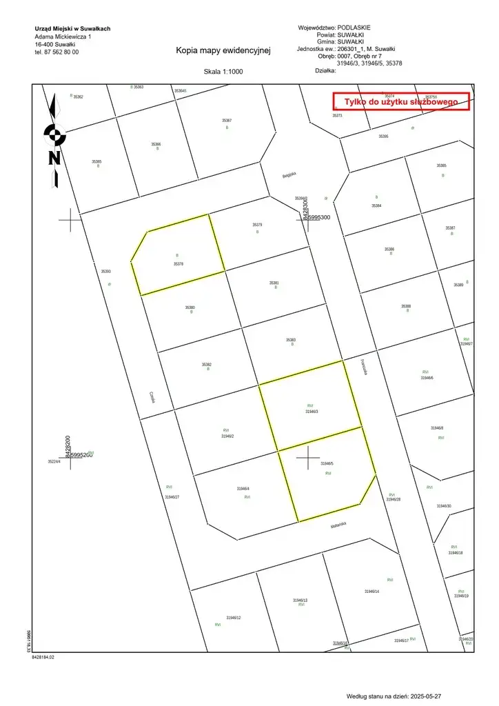 3. Oznaczona działką nr 35378 o powierzchni 0,0874 ha, niezabudowana, położona w Suwałkach w Obrębie nr 7, wchodząca w skład nieruchomości oznaczonej księgą wieczystą nr SU1S/00031671/3. Działka zgodnie z miejscowym planem zagospodarowania przestrzennego południowo - zachodniego rejonu ulicy Zastawie w Suwałkach zatwierdzonym Uchwałą LXVI/871/2024 Rady Miejskiej w Suwałkach z dnia 31.01.2024 roku, objęta jest konturem 5MNW - teren zabudowy mieszkaniowej jednorodzinnej wolnostojącej. Nieruchomość przeznaczona jest do sprzedaży w drodze przetargu ustnego nieograniczonego.