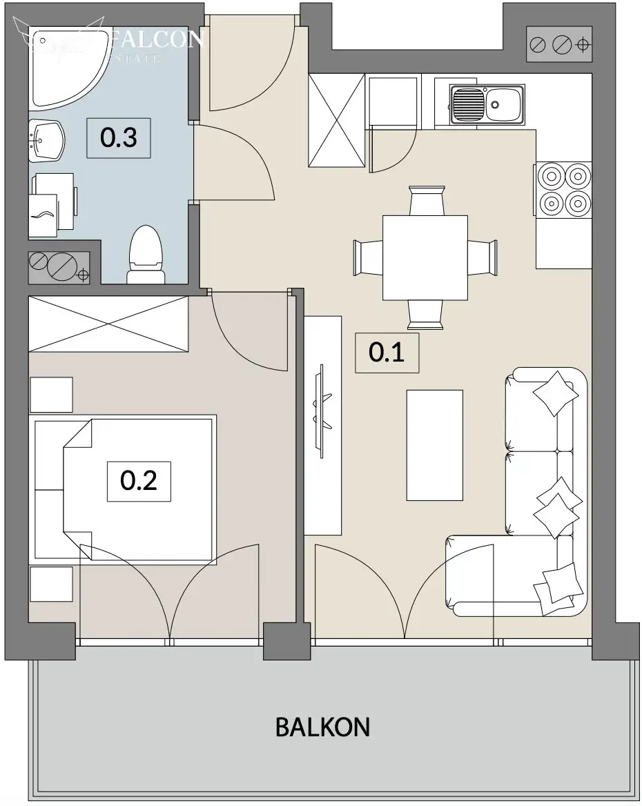 2 pokojowego apartamentu z balkonem w stanie deweloperskim