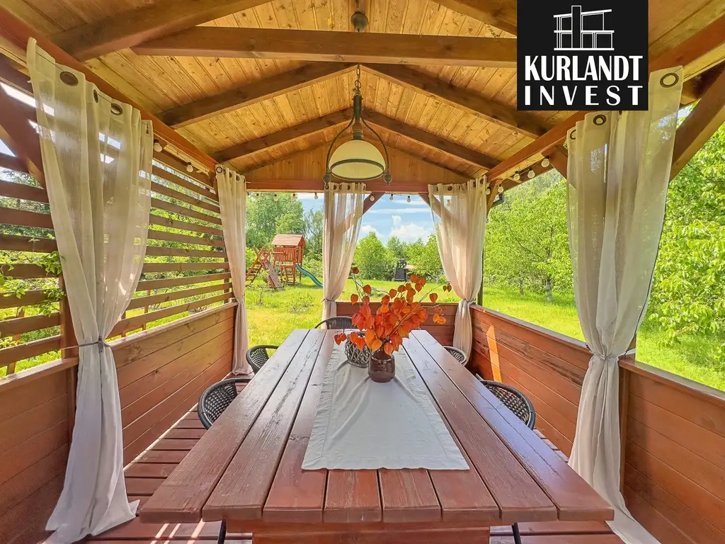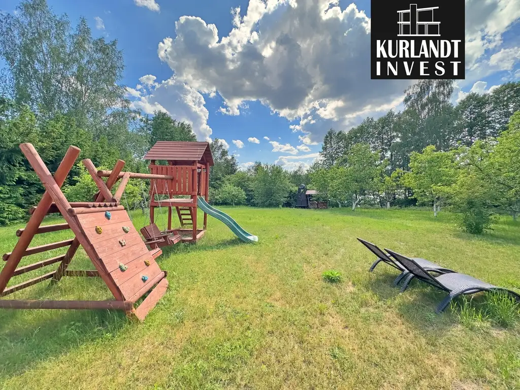 Garaż/warsztat, wędzarnia, grill, altany ogrodowe, kamienny krąg ogniskowy, oczko wodne, ogrodzony wybieg dla zwierząt.
