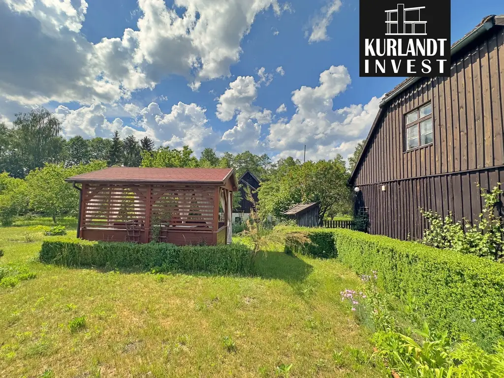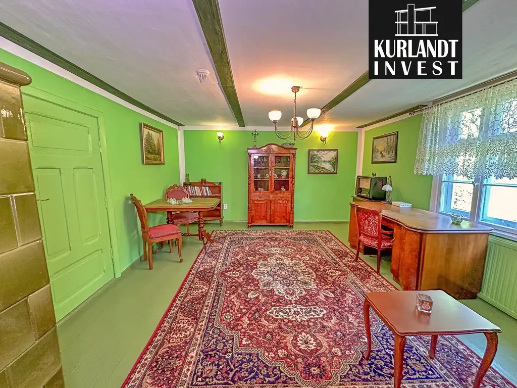 DOM GŁÓWNY Z DUSZĄ (135 m²):Budynek z 1906 r., drewniana konstrukcja, dachówka cementowa.
