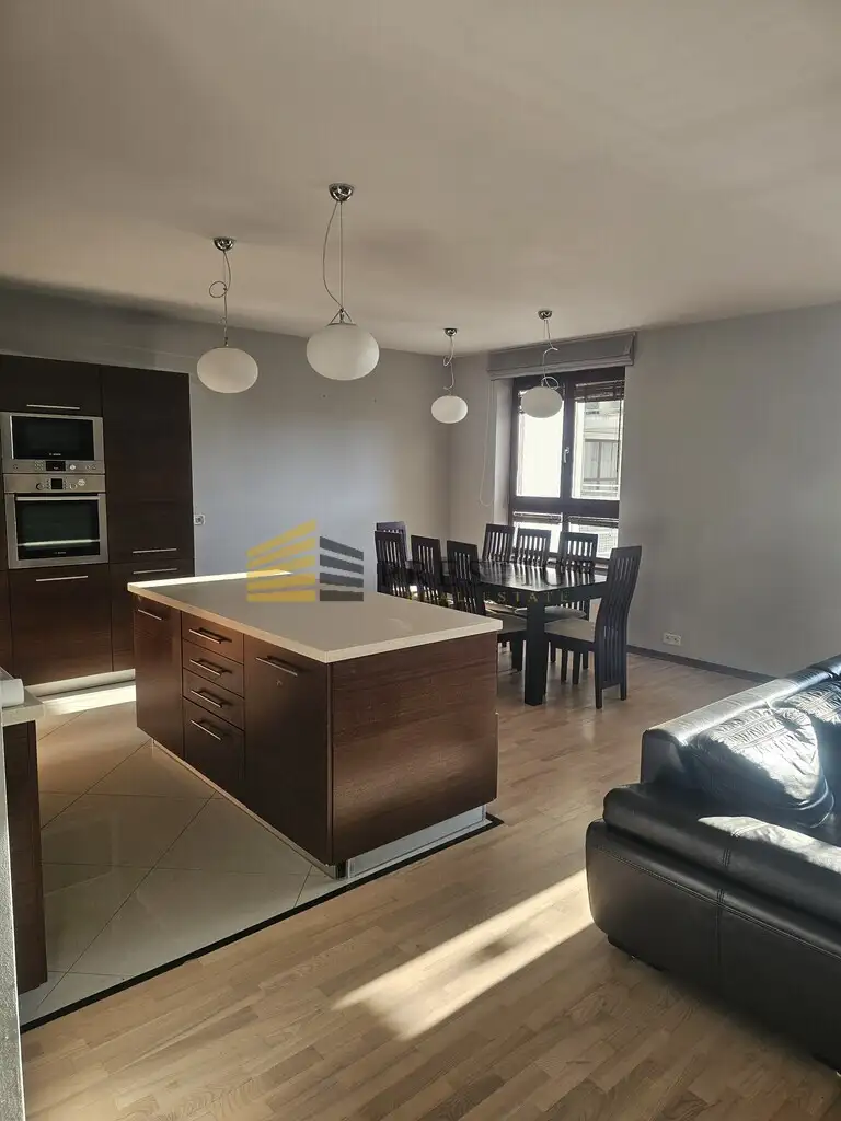Living room : The spacious living room combined with a modern kitchen and dining room is the heart of this unique apartment. Thanks to the large windows, the interior is perfectly lit, which creates a pleasant atmosphere. The perfect place to relax and meet with loved ones.