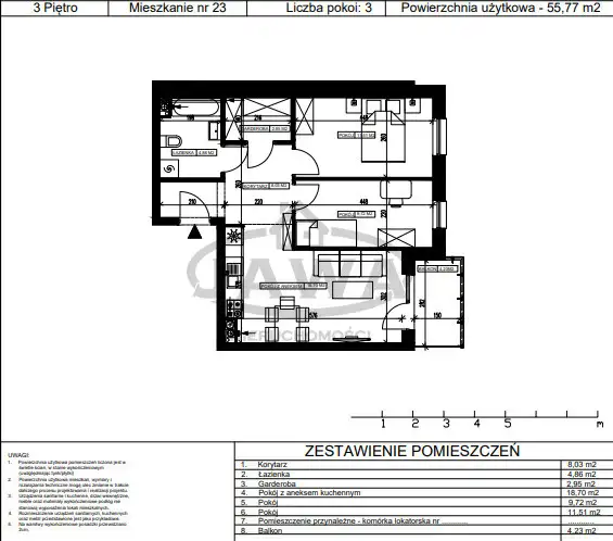 • Liczba pokoi / układ: Salon z aneksem kuchennym, dwie sypialnie, łazienka z wc.