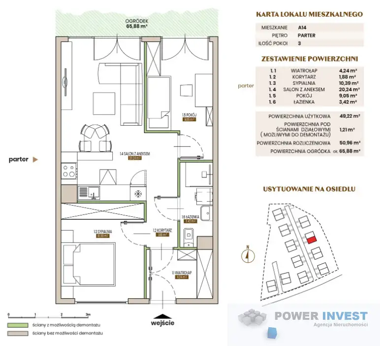 Powierzchnia pod ścianami działowymi (możliwość demontażu) 1,21 m²
