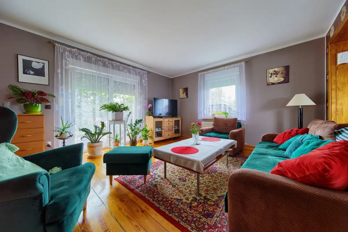 Jako doskonałe uzupełnienie nowoczesnego budynku wielofunkcyjnego, na terenie posesji znajduje się również urokliwy, wolnostojący dom jednorodzinny, wybudowany w 2001 roku. Oferuje on bardziej tradycyjny układ mieszkalny i pełnię prywatności. Na parterze domu znajdziemy otwartą strefę dzienną z salonem i funkcjonalnym aneksem kuchennym, dodatkowy, wszechstronny pokój idealny na gabinet lub gościnną sypialnię, oraz łazienkę. Piętro to typowa strefa nocna z trzema przytulnymi sypialniami oraz drugą, komfortową łazienką. Dom ten posiada bezpośrednie wyjścia na słoneczny taras z widokiem na ogród oraz dodatkowe, boczne wyjście na taras - idealne miejsca do wypoczynku na świeżym powietrzu. Zewnętrzne rolety zapewniają mieszkańcom większą prywatność i bezpieczeństwo, a praktyczne wejście na strych oferuje cenną, dodatkową przestrzeń do przechowywania.