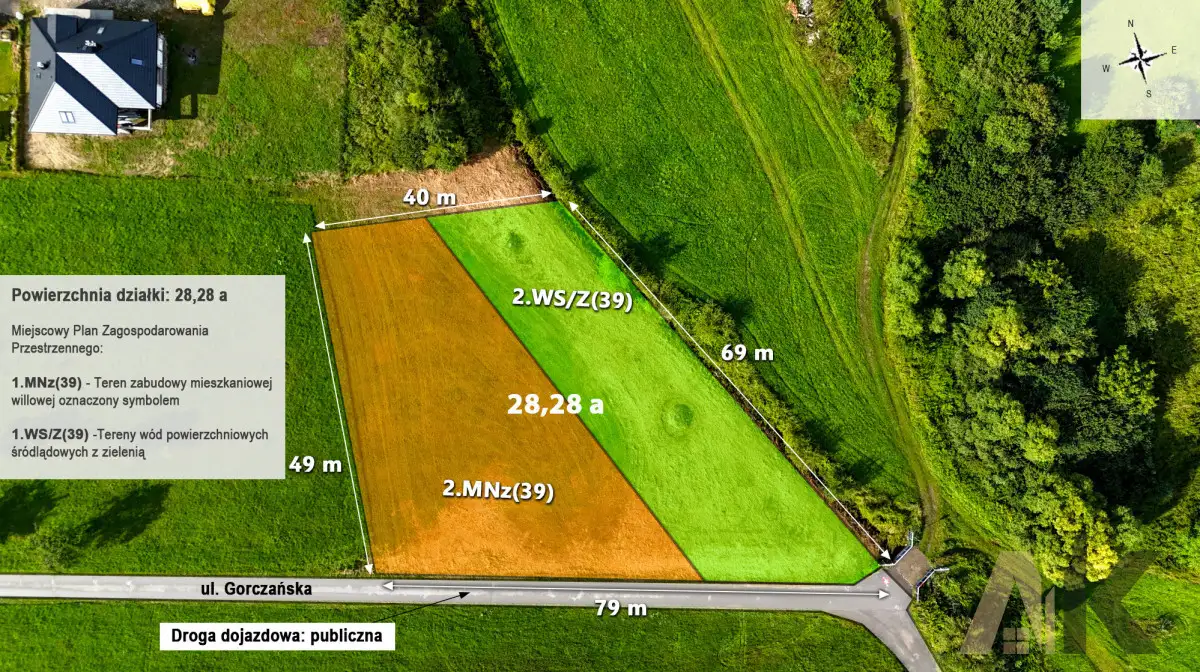 Przedmiotem sprzedaży jest działka położona w miejscowości Nowy Sącz,  przy ulicy Gorczańskiej/ Mizgałów os. Poręba Mała