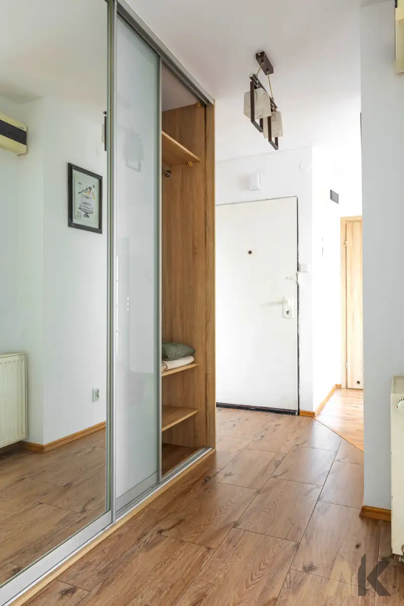 Korytarz: duża przesuwna szafa.