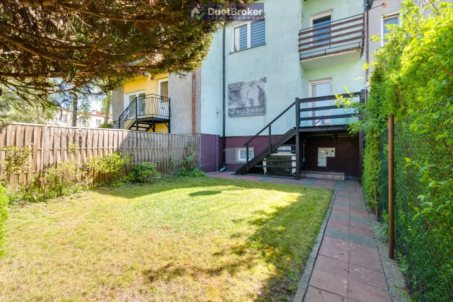 Nieruchomość wyposażona jest w dwa balkony oraz taras z wyjściem na zadbany, niewielki ogród. Budynek utrzymany w dobrym stanie technicznym.