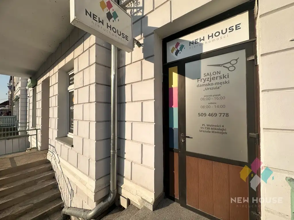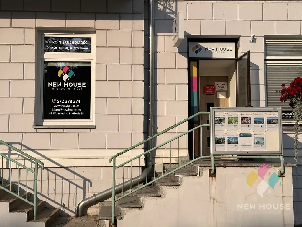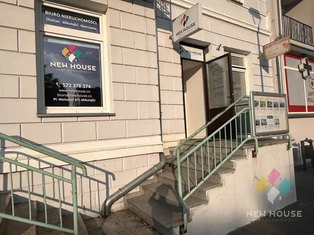 Lokal znajduje się na wysokim parterze piętrowej kamienicy usytuowanej przy głównym placu Mikołajek - Placu Wolności, w ciągu podobnych budynków. Na parterze znajdują się lokale użytkowe, na piętrach mieszkania. Przed budynkiem ogólnodostępne miejsca parkingowe.