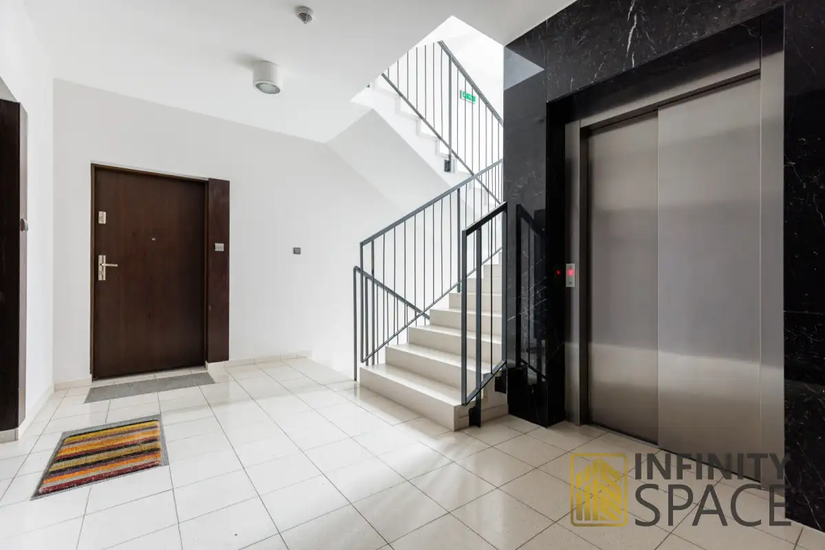 BUILDINGThe building was designed with attention to the comfort of its residents - it has a 2-level garage hall and a commercial and service part. The staircases are neat and well-maintained. The apartments located in a prestigious location are an example of modern architecture and exclusive finishes. More than half of the plot is undeveloped, which creates the possibility of direct access to the park and use of a private playground for children. Safety is ensured by 24-hour security. The estate is fenced and has monitoring.