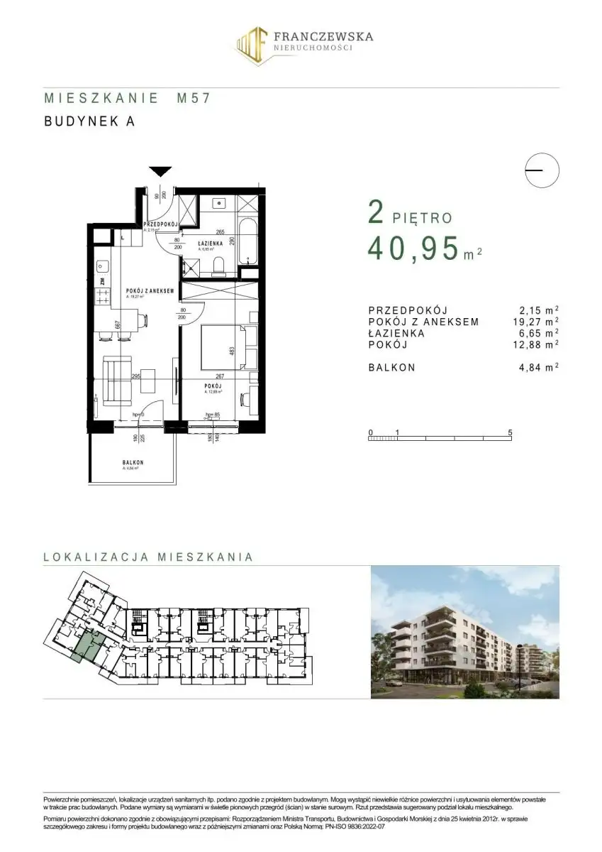 - pokój dzienny z aneksem kuchennym o pow. 19,27 m² z wyjściem na balkon o pow. 4,84 m²,