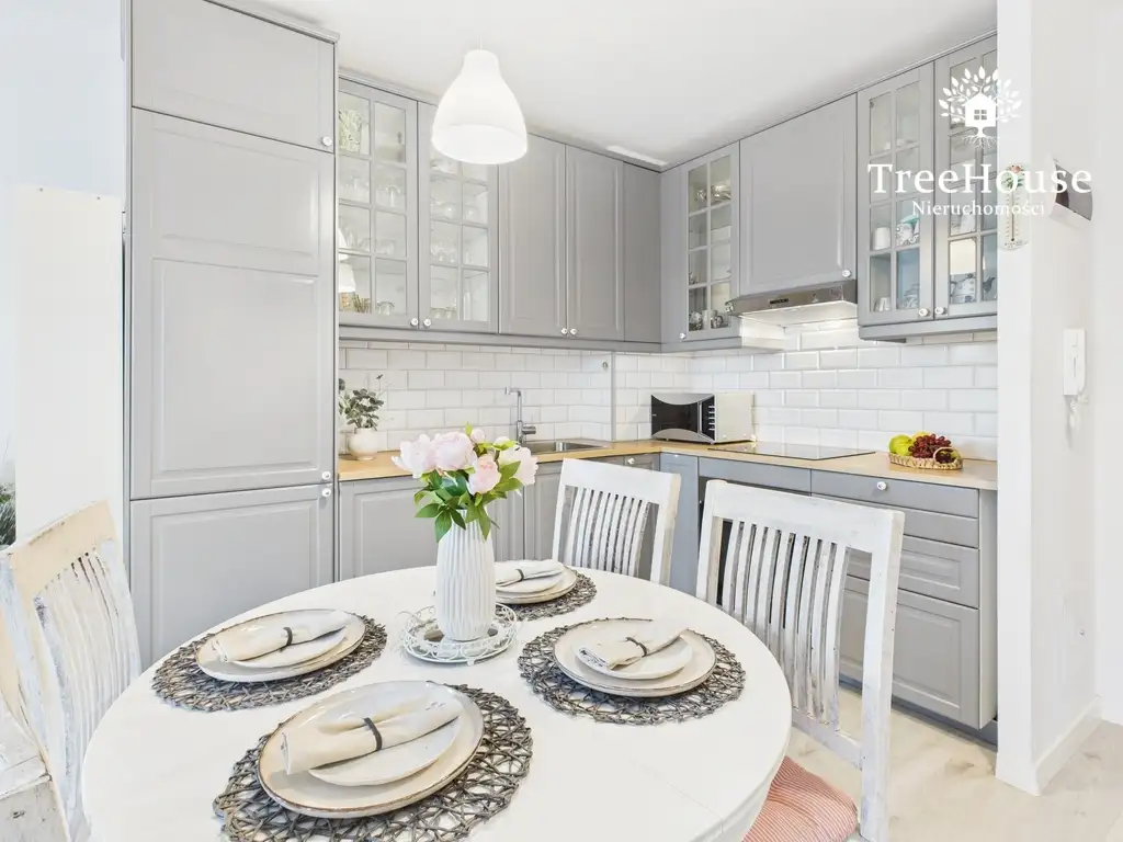 Istnieje możliwość pozostawienia całego wyposażenia widocznego na zdjęciach: mebli oraz sprzętów AGD. Dzięki temu nowe osoby mogą wprowadzić się praktycznie z walizką i korzystać z mieszkania od pierwszego dnia.