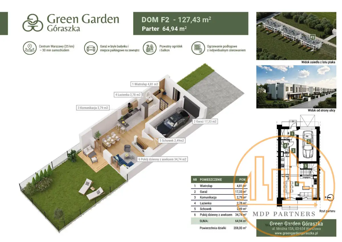 Green Garden Góraszka - wyjątkowe osiedleOsiedle Green Garden Góraszka zostało zaprojektowane z myślą o komforcie mieszkańców, prywatności i zielonym otoczeniu. To kameralny kompleks nowoczesnych lokali w zabudowie bliźniaczej, o rodzinnej architekturze, która gwarantuje poczucie przestrzeni i harmonii.
